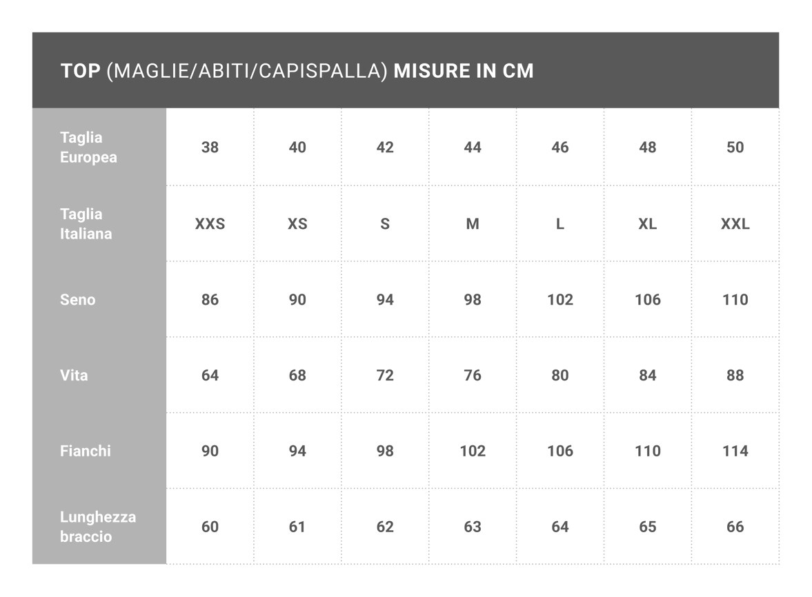 Se non avete le stesse misure della taglia selezionata scrivere in note “Le Tue Misure”.